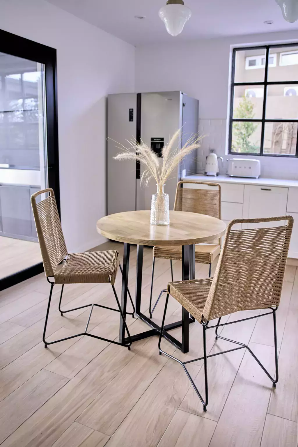 Las sillas Magnolia, con estructura de hierro macizo y un fino tejido de yute premium, suman confort, durabilidad y un toque artesanal que enamora.