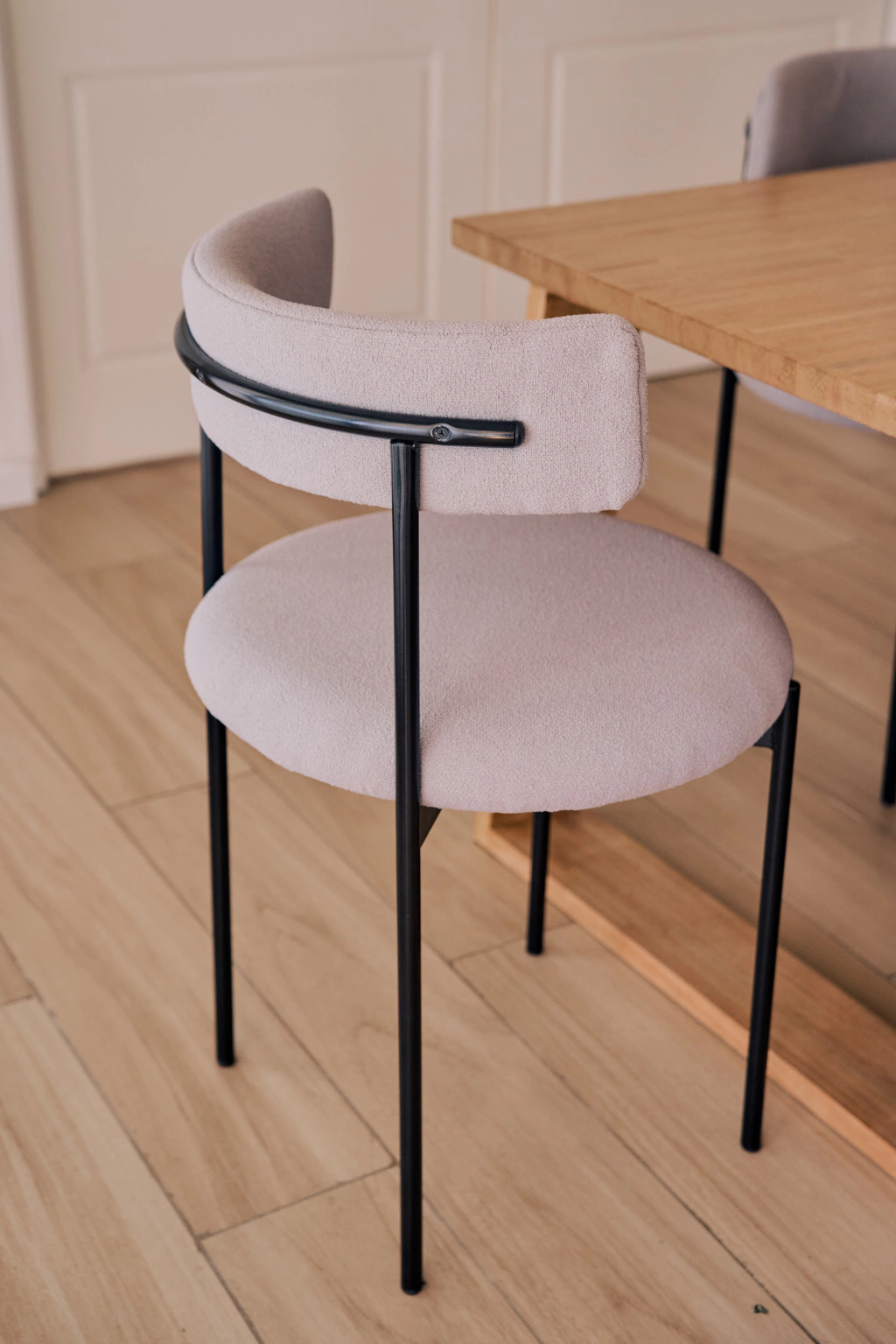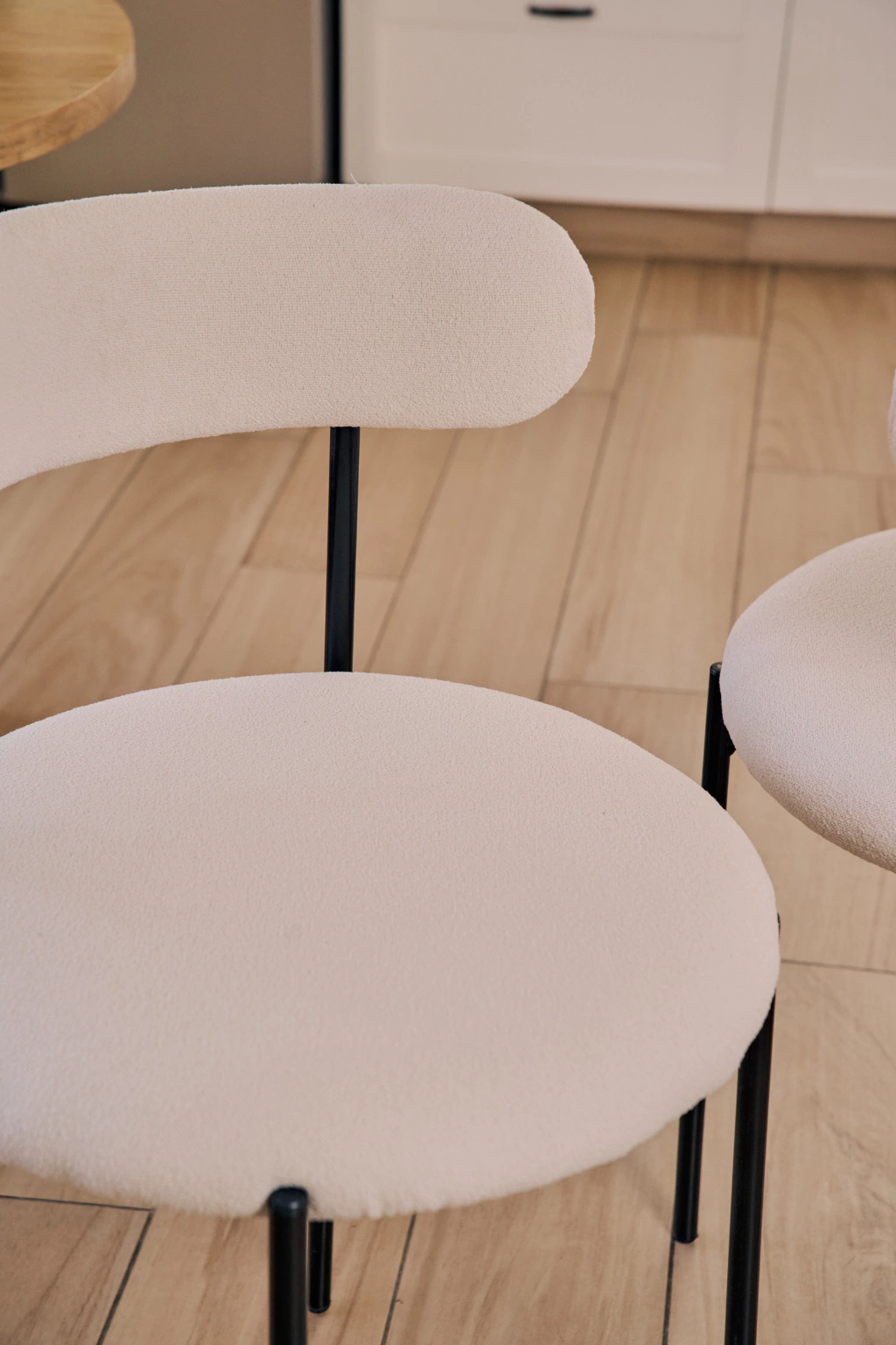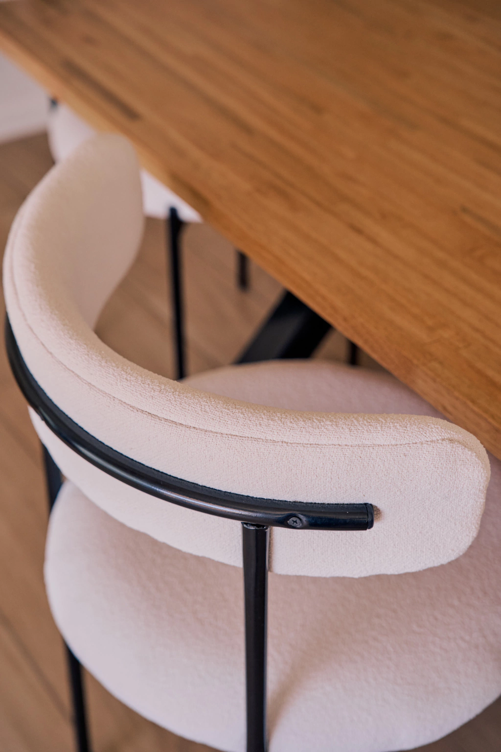 Forrada con tela boucle anti manchas , en asiento y respaldo 🙌